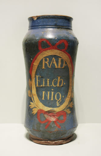 Inscripció: "RAD. / ELLeb. / NIg." [Radix Helleborus niger, arrels d’hel·lèbor negre], cartel·la pintada a mà.