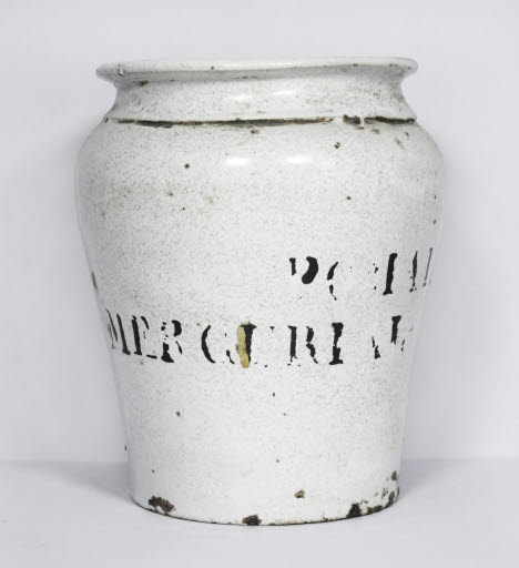 Inscripció: "POMADA / MERCURIAL [SIMIL]", cartel·la pintada amb trepa.