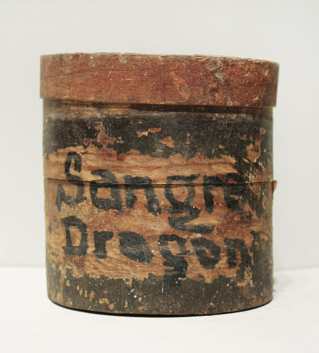 Inscripció: "Sangre / Dragon", manuscrita amb pintura negra.