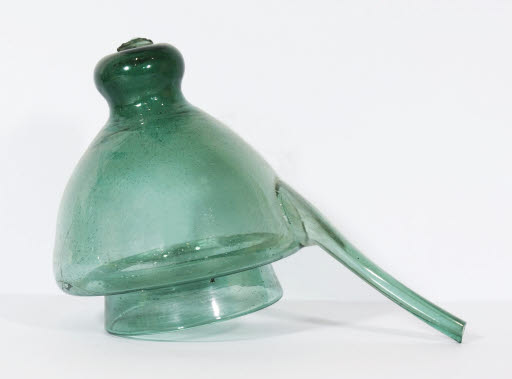 Condensador d'alambí o cap de cucúrbita. Es tracta d'un estri de vidre verd de forma semioval, amb un broc llarg i estret. El receptacle s'estreny a la part inferior, donant lloc a un coll troncocònic, el qual s'encaixaria a la part superior de la caldera o cucúrbita (denominació que se li donava antigament per la seva forma de carbassa) d'un alambí, on s'escalfaria la substància líquida que es vol destil·lar.