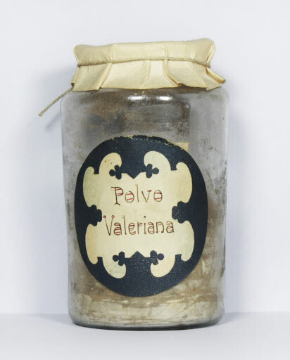 Inscripció etiqueta: "Polvo / Valeriana", manuscrita amb tinta.