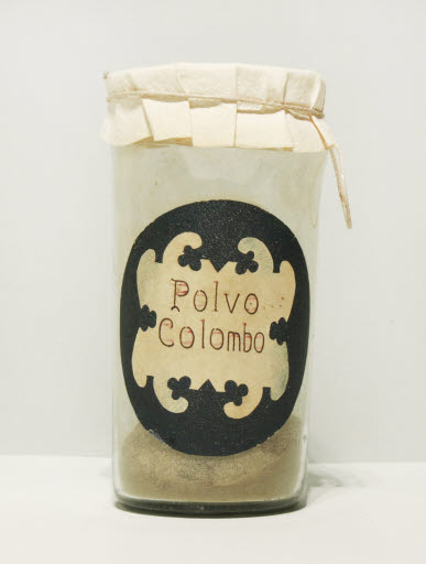 Inscripció etiqueta: "Polvo / Colombo", manuscrita amb tinta.
