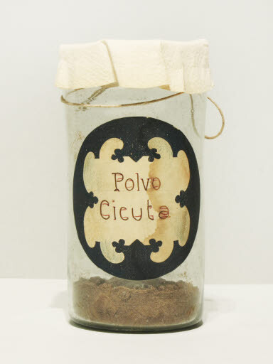 Inscripció etiqueta: "Polvo / Cicuta", manuscrita amb tinta.