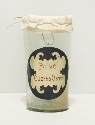 Inscripció etiqueta: "Polvo / Cuerno Ciervo", manuscrita amb tinta.