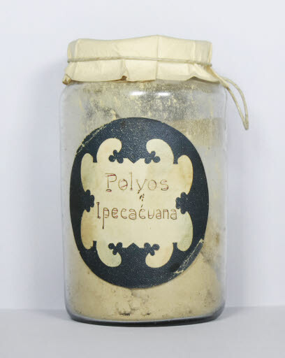 La ipecacuana (Cephaelis ipecacuanha) fou portada a Europa des de Brasil per Le Gras l’any 1672, i va ser el primer medicament distribuït per odre reial a França. Del seu rizoma s’extreuen l’emetina i la cefalina, alcaloides responsables de les seves propietats medicinals: emètic, expectorant, antidiarreic, depriment vascular i diaforètic. Estava indicada en enverinaments, empatx gàstric, afeccions cròniques de l’estómac, diarrea, disenteria, pneumònia, bronquitis, laringitis, tos ferina, hemoptisi, epistaxi i metrorràgia. Pel seu potent efecte vomitiu, ja fou usada pels indis contra la disenteria. Estava contraindicada en ancians i cardíacs. S’administrava en forma de xarop, pólvores i ènemes.