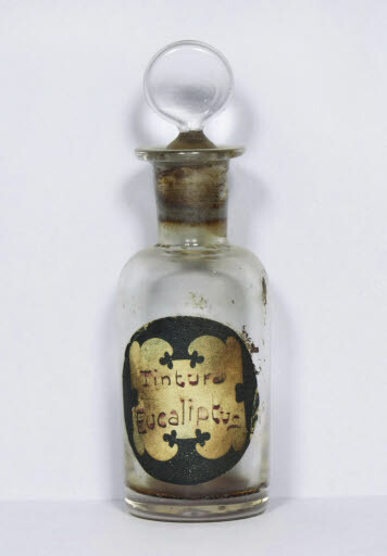 Inscripció etiqueta: "Tintura / Eucaliptus", manuscrita amb tinta.