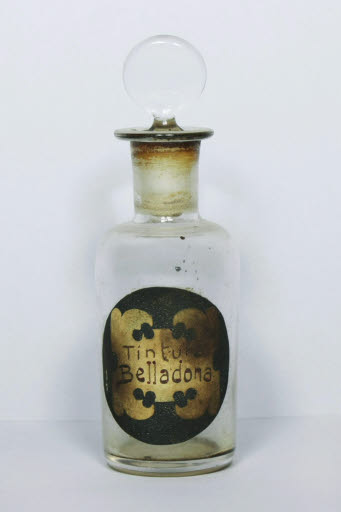 Imscripció etiqueta: "Tintura / Belladona", manuscrita amb tinta.