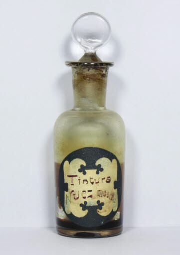 Inscripció etiqueta: "Tintura / Nuez moscad", manuscrita amb tinta.