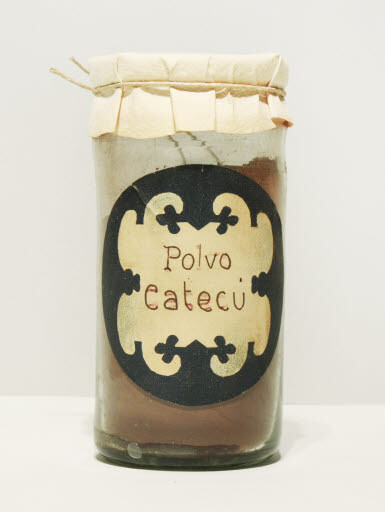 Inscripció etiqueta: "Polvo / Catecú", manuscrita amb tinta.