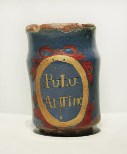 Inscripció: "PULU. / ANTIMO." [Pulvis Antimonium], cartel·la pintada a mà.