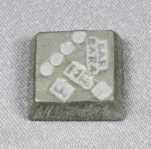 Ponderal de quatre rals amb cospell troncopiramidal, a l'anvers del qual hi figuren l'escut de Barcelona, l'escut de Catalunya i la marca del taller Barbará.