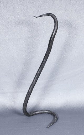 Consisteix en una tija cilíndrica llarga i prima, de ferro forjat, en forma de serp. Té l'extrem superior corbat, amb una llengua bífida, on es subjecta el ganxo de la balança. L'altre extrem també és corbat, donant lloc a un semicercle pla, que fa de base de la peça.