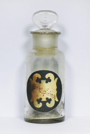 Inscripció etiqueta: "Antipirina", manuscrita amb tinta.