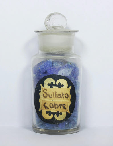 Inscripció etiqueta: "Sulfato / Cobre", manuscrita amb tinta.