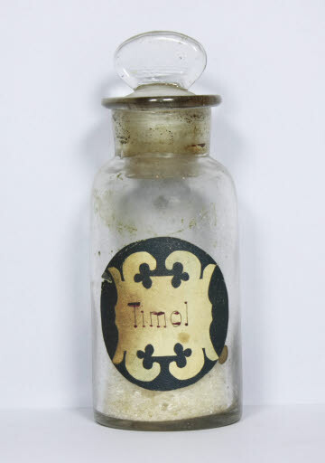 Inscripció etiqueta: "Timol", manuscrita amb tinta.