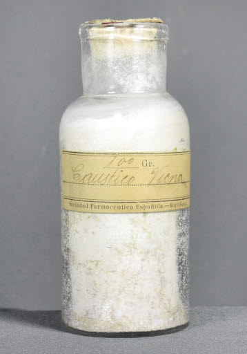Inscripció etiqueta: "100 Gr. / Caustico Viena / Sociedad Farmacéutica Española.- Barcelona", impresa i manuscrita.