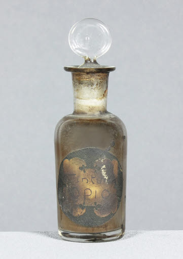 Inscripció etiqueta: "Tintura / Opio", manuscrita amb tinta.