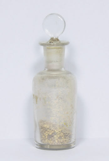 Originalment devia portar una etiqueta amb el nom del producte que el recipient estava destinat a contenir, però en tot cas aquesta s'ha perdut.