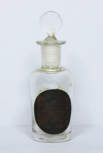 Inscripció etiqueta: "Alcanfor / liquido", manuscrita amb tinta.