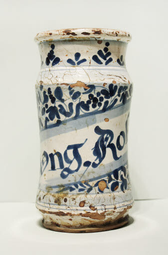 Albarel amb inscripció "Ung. Rosat. Sat"