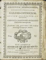 Llibre "Tyrocinium Pharmaceuticum, Theorico Practicum, Galeno-Chymicum. Auctum, Correctum, et Reformatum"